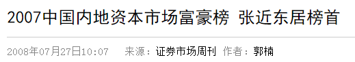 2004年,苏宁电器上市,张近东身家暴涨5倍。2007年,张近东评为中国内地资本市场首富,看起来是比“中国首富“差了点,因为当时的苏宁被老对手国美压着打,不过在2008年,国美掌门人黄光裕进去了,苏宁迎来自己的黄金发展时期。