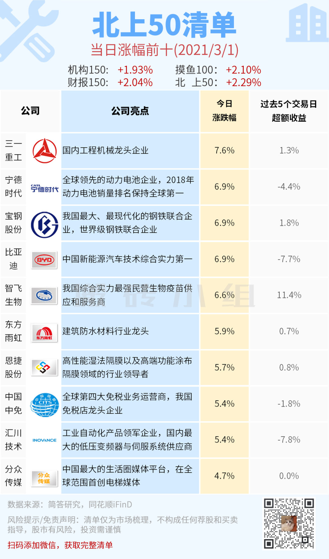 对了,今天北上50榜单更新了,截止到2月的详细清单可以扫上面小姐姐的微信获取,直接添加就能自动获取到了,不需要回复关键词,这个月有3只股票变动~
