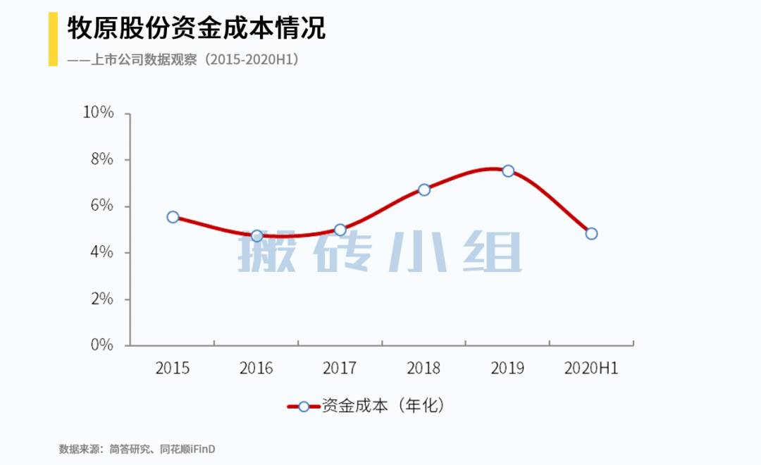 我们再来看牧原的情况,利息支出跟着公司借款规模的上升而上涨,但截至20年Q3占据公司净利润的规模不足10%。
