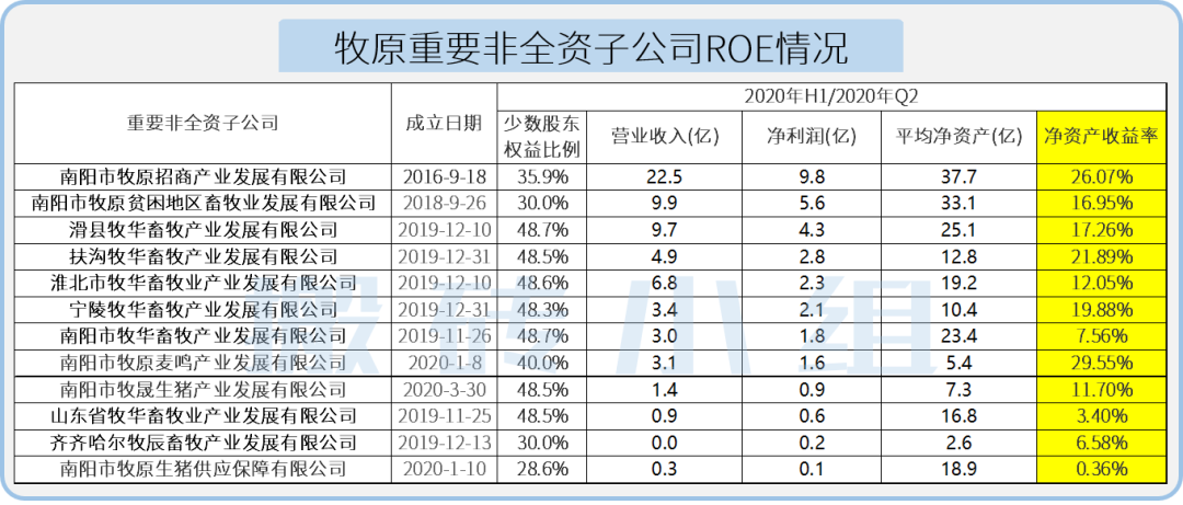 我测算了一下牧原重要子公司的ROE情况,其实差异比较大,有的ROE接近30%,有的ROE是个位数。