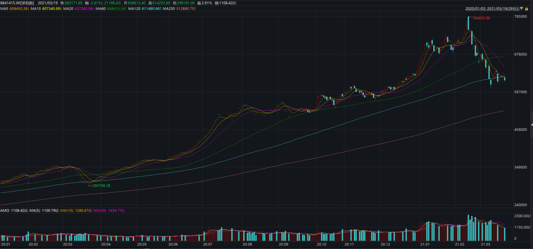 整体上,基金的净值表现与抱团股的走势高度相关,不过边际上也有点变化,上上周(2021年3月1日至2021年3月5日),样本基金与茅指数的相关系数为96%,β值82.9%。