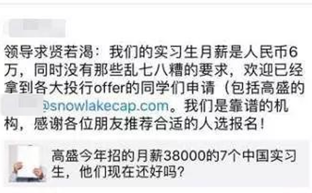 这已经不是雪湖资本第一次这么豪里豪气了,17年的时候,就传出雪湖以6万元月薪招聘实习生,要知道,那个时候金融圈的实习生,实习工资不够交房租的一抓一大把,不倒贴钱都算待遇相当不错了。
