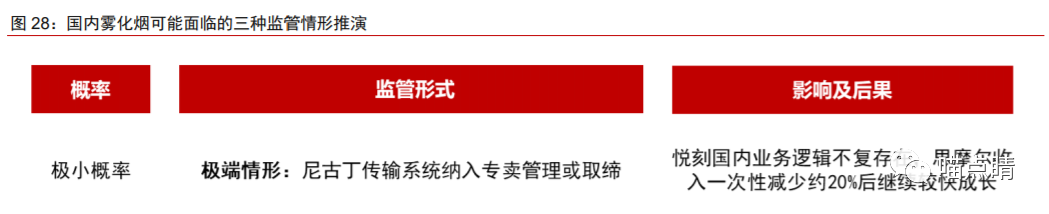 不过之前机构普遍认为电子烟会有私人定制版的税率框架,甚至将纳入专卖管理,归类为极小概率的黑天鹅情形,但不巧,乌鸦嘴竟一语成谶。。看下当时写的后果,以及昨晚雾芯47%的跌幅,就知道这一锤的分量有多重了。