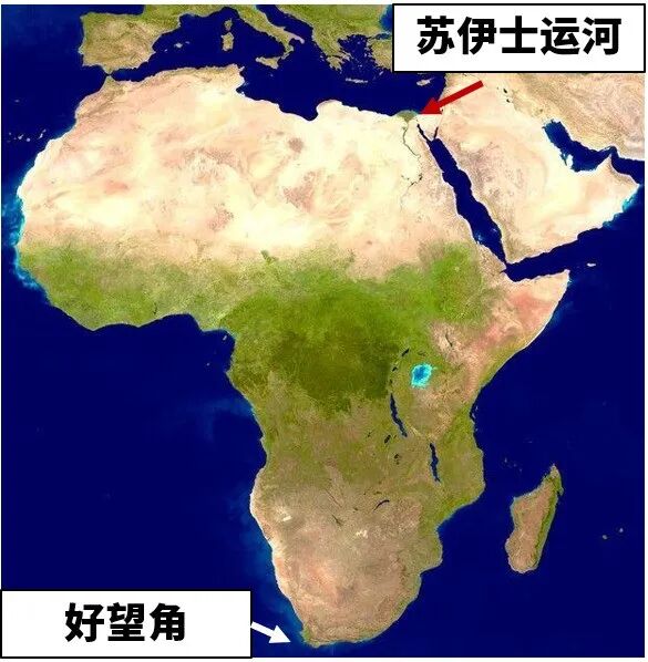 初高中地理介绍过,苏伊士运河位于亚洲与非洲之间,是亚洲与欧洲进行海上运输的重要通道。如果苏伊士运河被堵了,那货船就要从下面绕老大一圈,绕过非洲的好望角,才能到达欧洲。