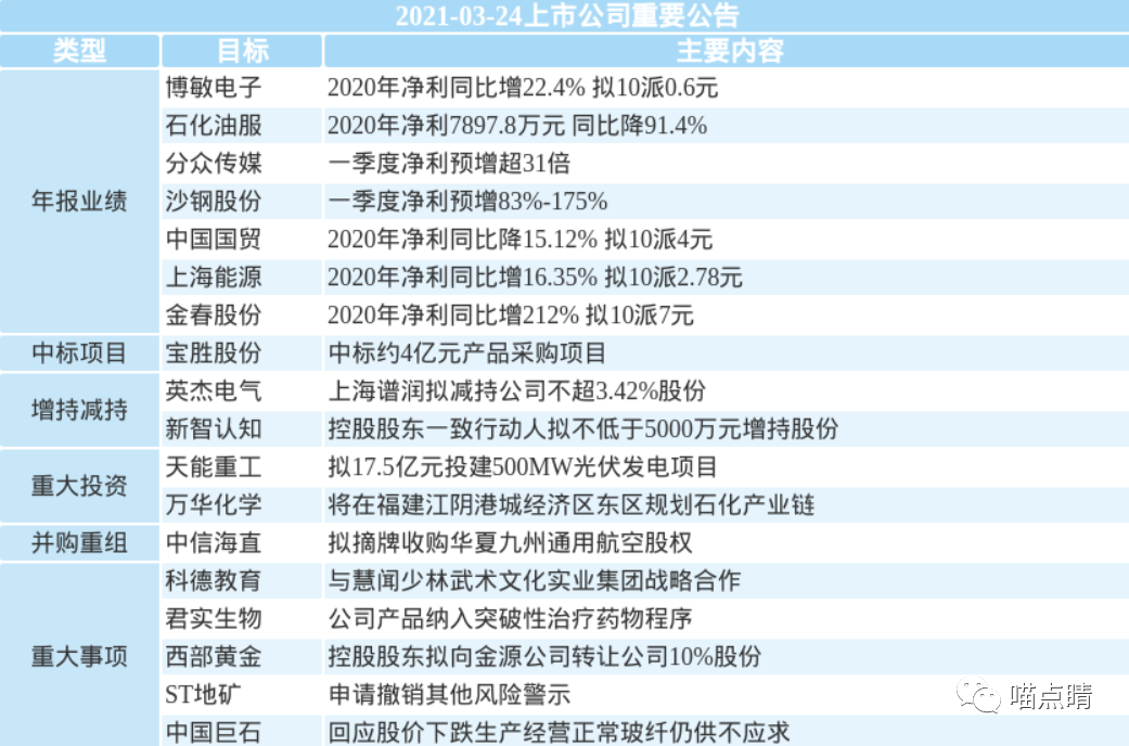 3、天赐材料2020年净利润5.33亿元,同比增长3165.21%,拟每10股送7股并派现2元。2021年一季度预盈2.5亿元-3亿元,同比增长502.35%-622.82%。锂离子电池材料电解液产品市场需求旺盛,销量增长明显。