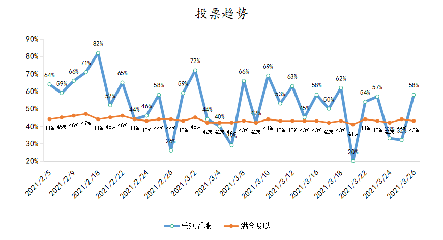 上周五投票趋势“乐观看涨”提升至近60%,市场情绪转好。有三位兄台竞猜获奖,可找小姐姐兑现红包!