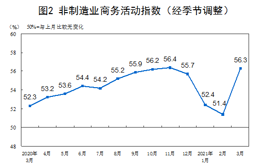 昨天喊大伙儿关注3月的PMI数据,上午9点数据出炉,制造业51.9,非制造业56.3,这个数据是比较超预期的。