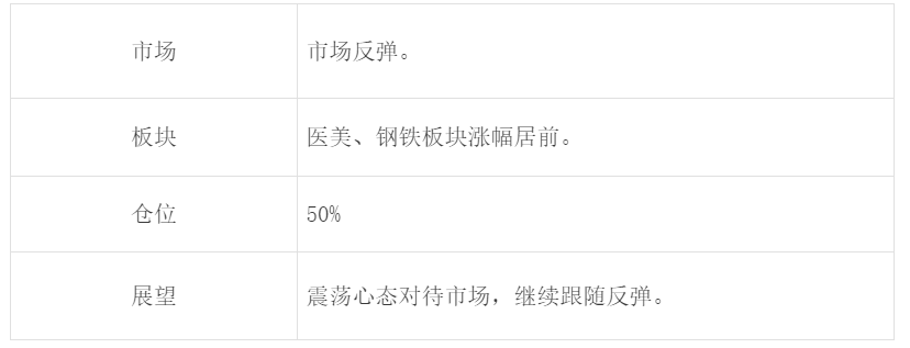 今天市场整体反弹,几个指数都收了个根中阳线,二季度能开门红还是很不错的,一季度的上窜下跳总算是过去了~