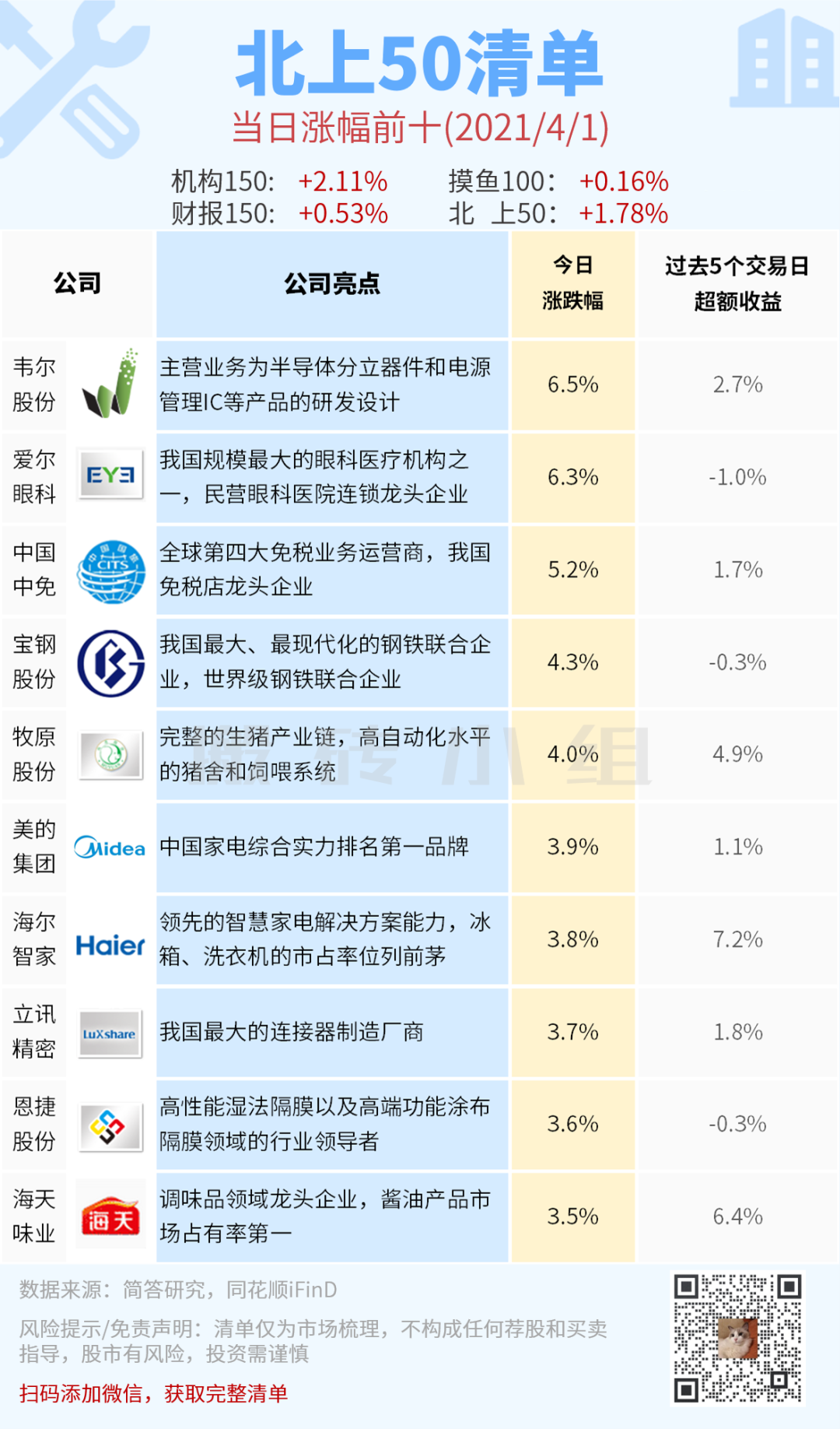北上50榜单今天再次更新,最新的单子新进了两只个股,要获取清单的扫上面图中的二维码就可以直接获得啦~