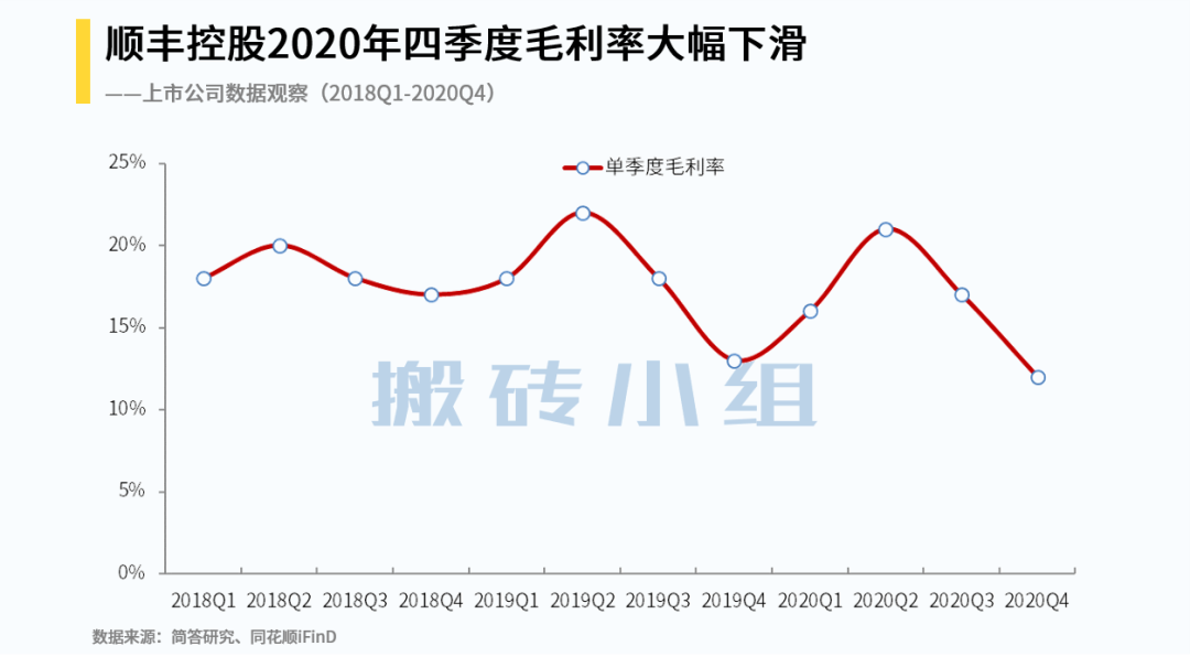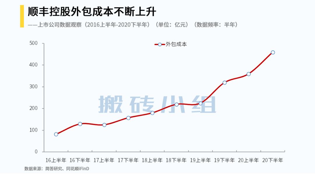 顺丰一季度外包成本这一块估计是刹不住的。顺丰的投资者关系总监给了一个具体的说法:顺丰运力很多是租用的,价格波动,一下贵了很多,始料未及。