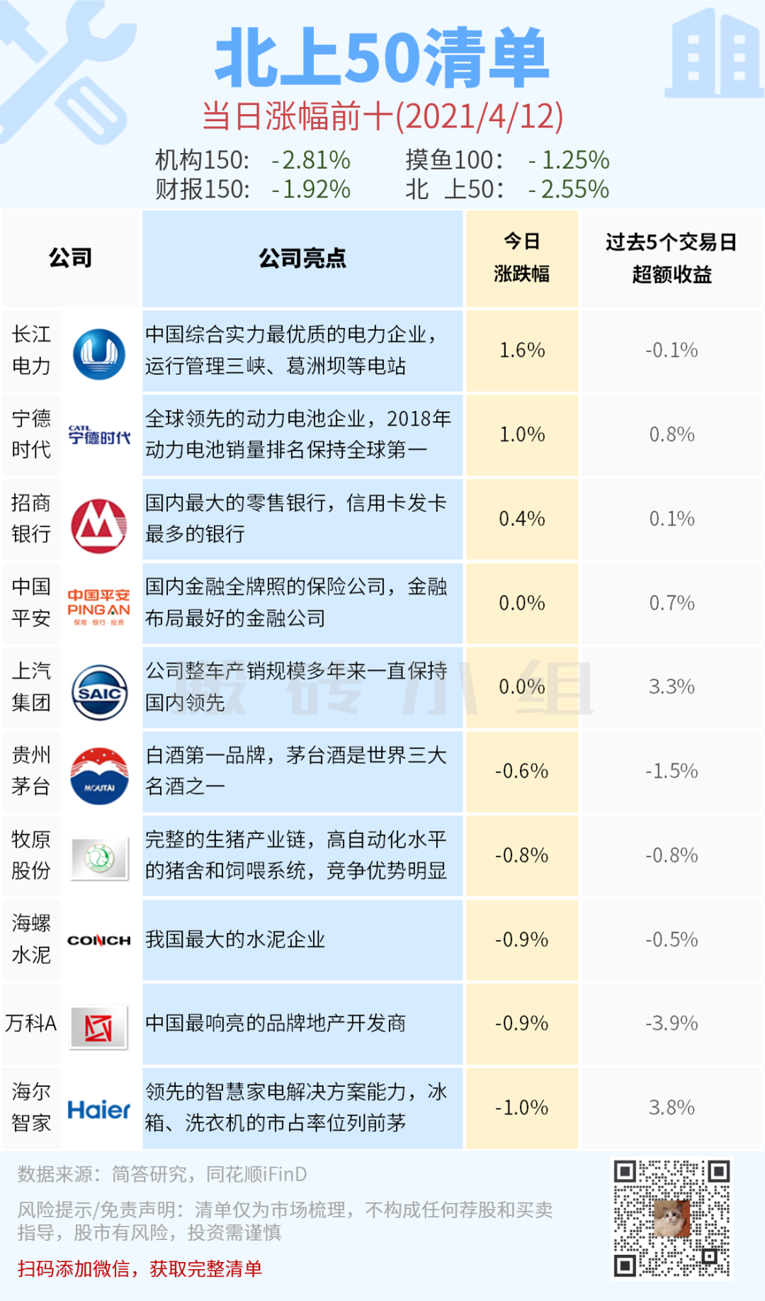 北上50榜单今天是真的惨,整个榜单里没几个红的,北上资金今天跟大家一起吃这碗大面。