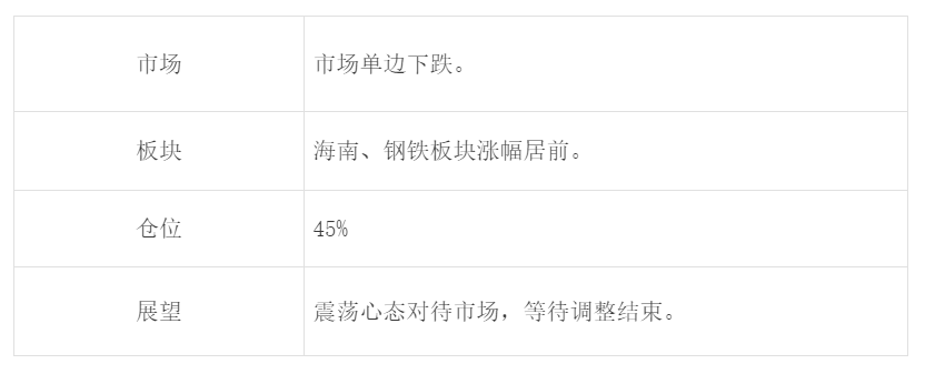 当前市场无论是情绪、资金、还是宏观状况都不太支持大涨,在经历了1个月的反弹以后,这里应该保持好防守的姿态,等待市场底部真正走稳了再做大的动作。
