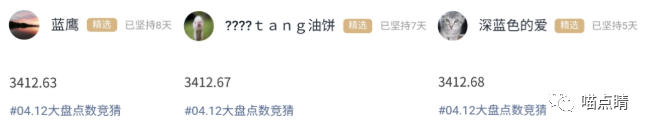 昨天投票趋势“乐观看涨”继续在50%以下,市场情绪较弱。有三位兄台竞猜获奖,可找小姐姐兑现红包!