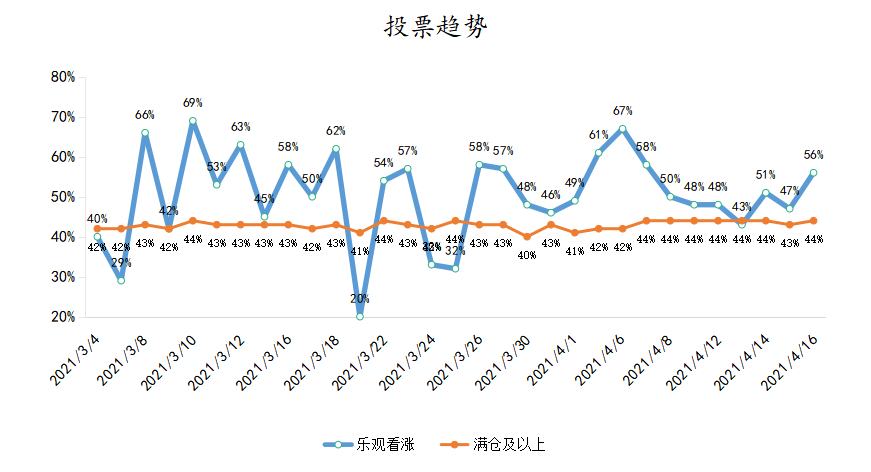 上周五投票趋势“乐观看涨”升至50%以下,市场情绪较弱。有三位兄台竞猜获奖,可找小姐姐兑现红包!