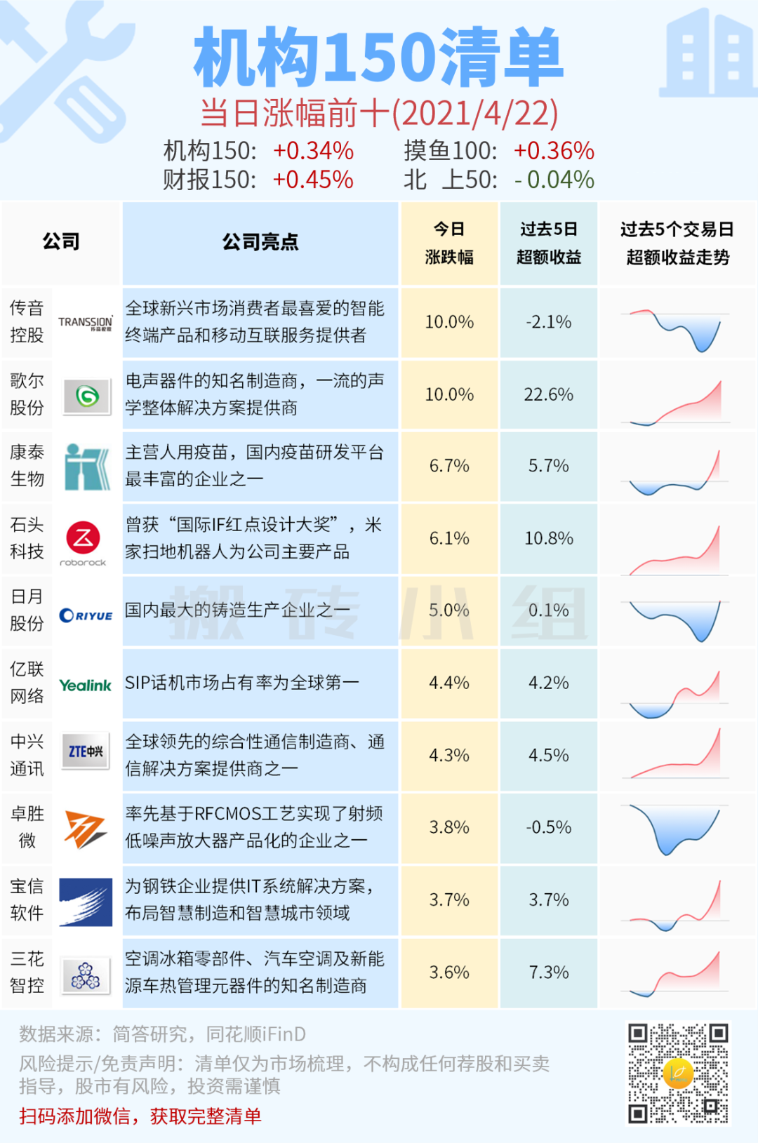 3)韦尔股份:一季度实现净利润10.4亿元,同比增长133.84%。跟此前发布的业绩预告基本一致。