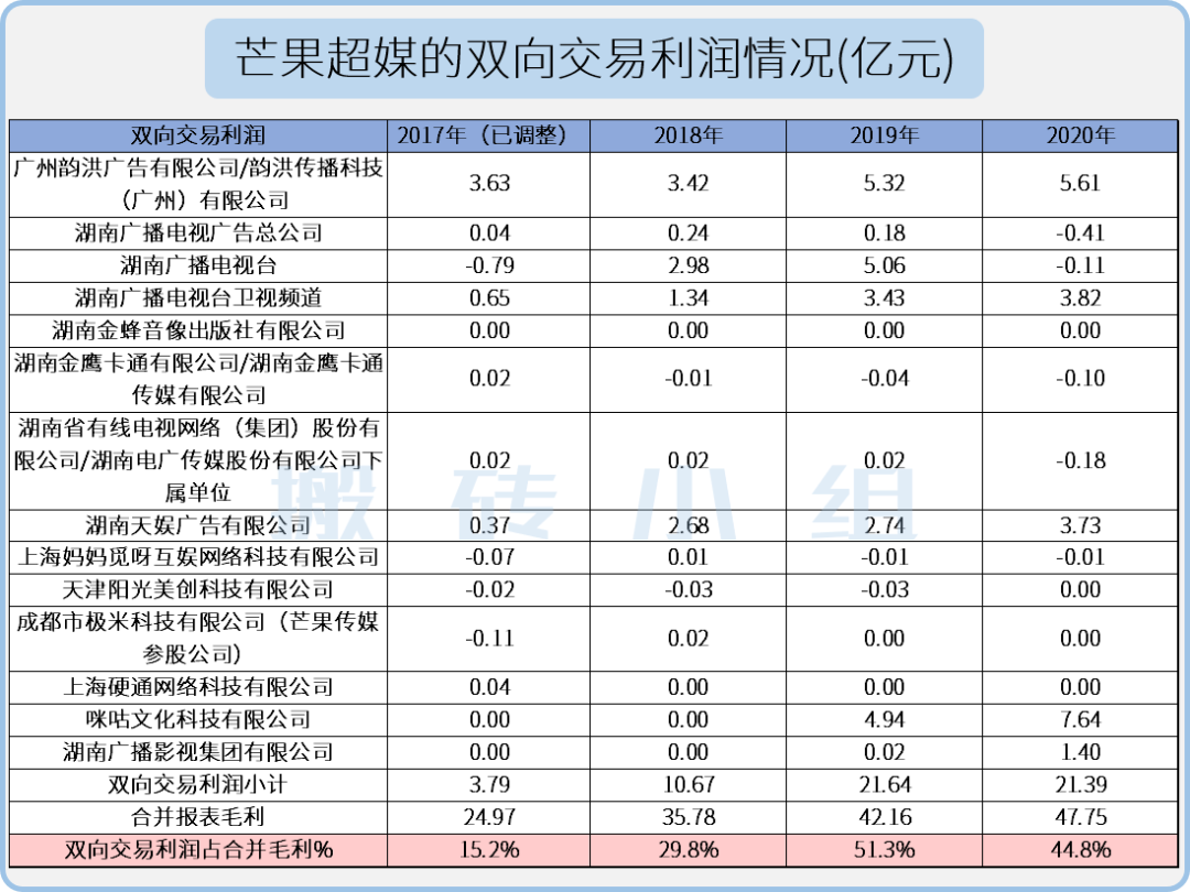 1)约束比较数据:同一关联主体,用销售与采购之间的交易额直接相减,计算“双向交易利润”,这导致双向交易利润已经是相对低估的数字。因为某些关联方采购,是应该资本化的,比如2020年6.6亿采购湖南广播影视版权,而我们在这里一刀切不考虑采购支出资本化情形;
