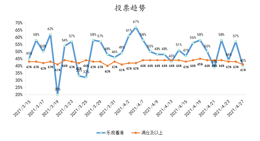 昨天投票趋势“乐观看涨”将至40以下,市场情绪转好。有三位兄台竞猜获奖,可找小姐姐兑现红包!