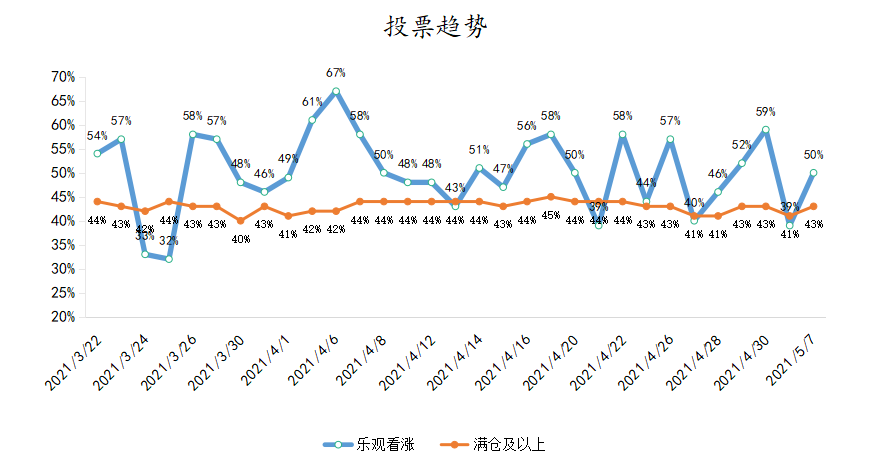 上周五投票趋势“乐观看涨”升至50%,市场情绪略微好转。有三位兄台竞猜获奖,可找小姐姐兑现红包!