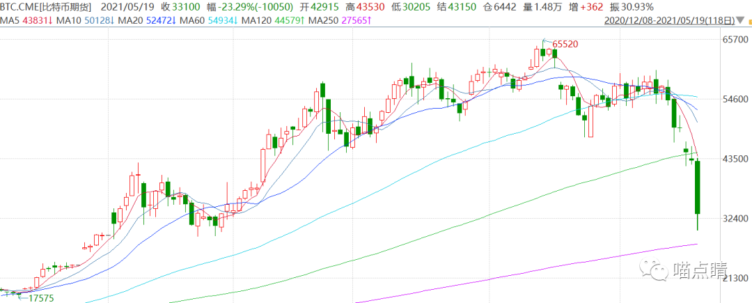 2、比特币昨晚血崩了,一度跌近30000大关,单日最多狂泻了10000美元,对币圈玩家来说又是一个不眠之夜。杀跌的诱发一是国内外政策的降温,二是重要旗手马斯克的暧昧态度,加之美国通Z问题的隐忧,直接几脚就踩了下来。而之前跟风的狗狗币也成功的跌成狗,屎币也跌成屎。。