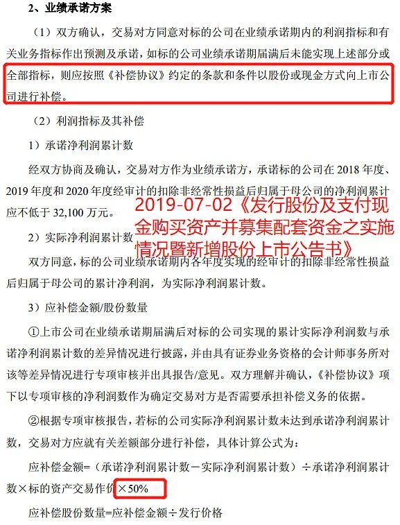 一方面,补偿方式可以选择现金或股份;另一方面,补偿比例仅有50%。也就是说,补偿金额=(32,100-23,573.02)÷32,100×50%×17亿=22,579万元。