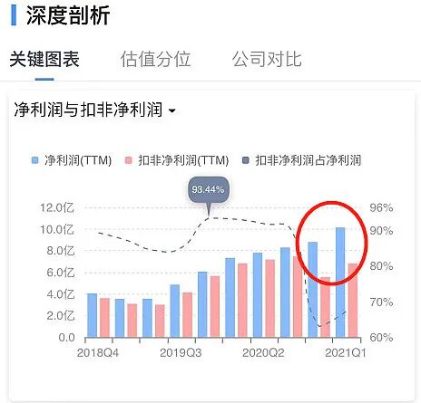 由于这笔2.3亿收益属于“非经常性收益”,关键图表“净利润与扣非净利润”中在20Q4也体现了一个较大的缺口。