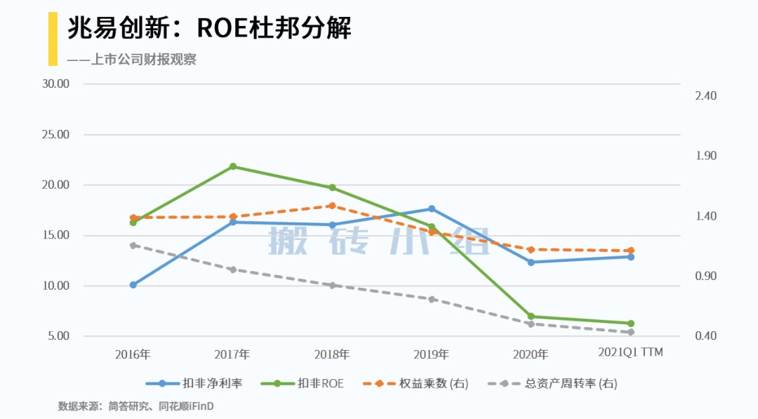 公司整体经营情况如何呢?从ROE驱动因素的分解可以看到,公司总资产周转率(灰色虚线)从2012年以来逐年下降。