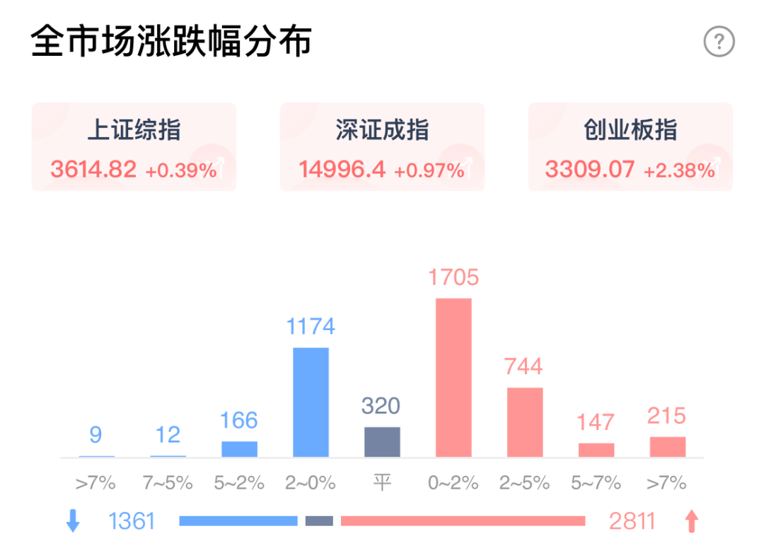 今天市场比较分化,上证指数小幅震荡,创业板和科创板大涨,全市场上涨的家数有2800家,今天的市场是比较明显的权重搭台后,题材唱戏。