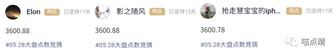 上周五投票趋势“乐观看涨”保持在60%以上,市场情绪较好。有三位兄台竞猜获奖,可找小姐姐兑现红包!