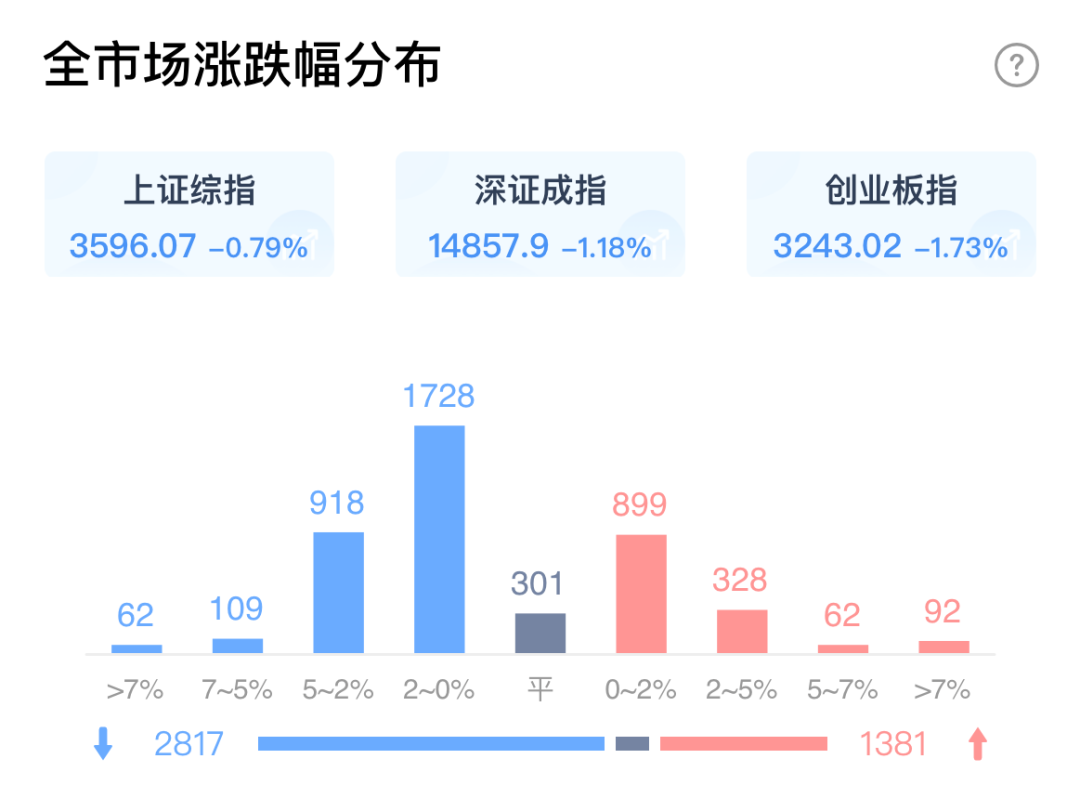 今天市场展开强震荡,各大指数都下跌了一些,全市场2800家公司下跌,今天这个盘面算是小普跌了。