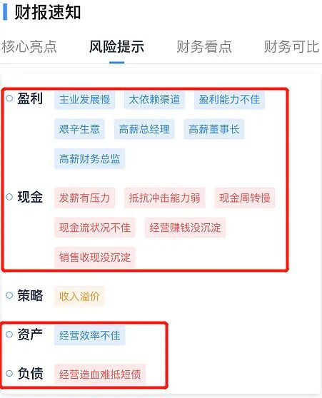 但在风险提示上,标签集中提示我们关注公司的成长能力、渠道开支、现金状况、以及短期债务压力。