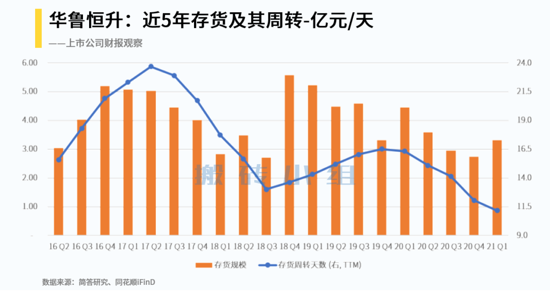 较大的经营压力使得公司从2019年开始逐步降低存货规模:从2018年末5.5亿元下降到2019年末3.3亿、2020年末2.7亿,存货周转天数逐步加快。
