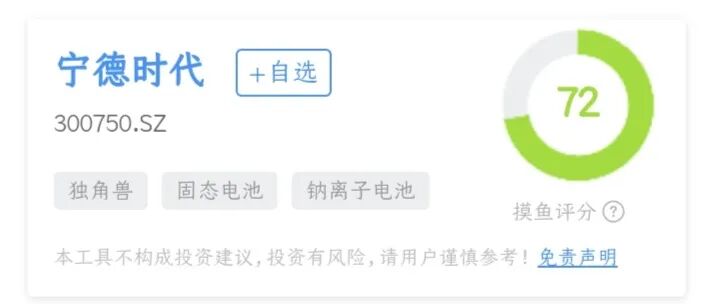 宁德时代的摸鱼财报助手打分是72分,财务标签和风险提示可以点击下方图片查看: