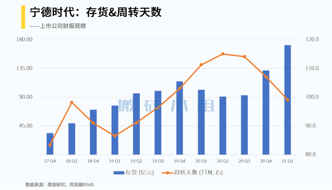在产能利用率较高、库存周转不断加快的背景下,公司去年至今宣布了几次巨额资本开支计划。截至2020年末,已投产+在建产能合计150GWh,是2019年产能的3倍。