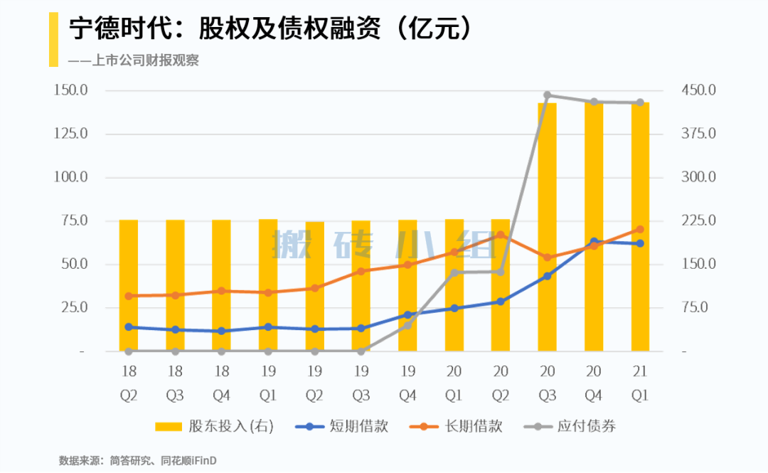 如此巨额融资趴在账上,资金成本多少呢?从融资来源上看,最主要增量来自2020年7月增发的220亿,下半年的应付债券增加100亿,以及逐步增加的短期借款。