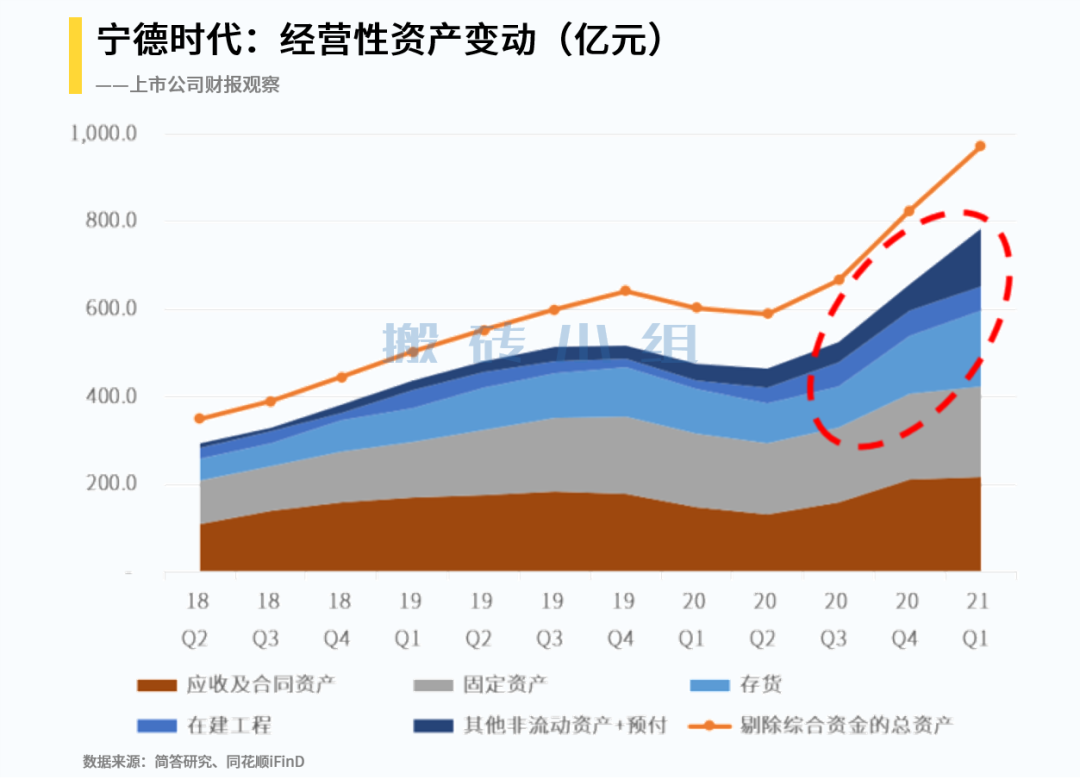 在剔除掉货币资金、理财之后,可以看到最近2个季度“经营性资产”主要投入为:存货,预付材料款及工程设备款、在建工程。总结下来就是产能和库存,但与融资相比、这个投入进度“十分克制”。