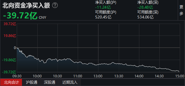 【北上资金观察】北向净流出39.72亿。
