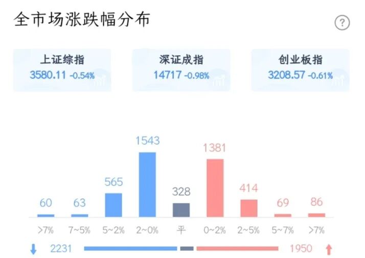 今天市场再次震荡,各大指数都收跌,下跌家数有2200家,热门板块跌得更多一些,今天的亏钱效应应该是非常显著的。