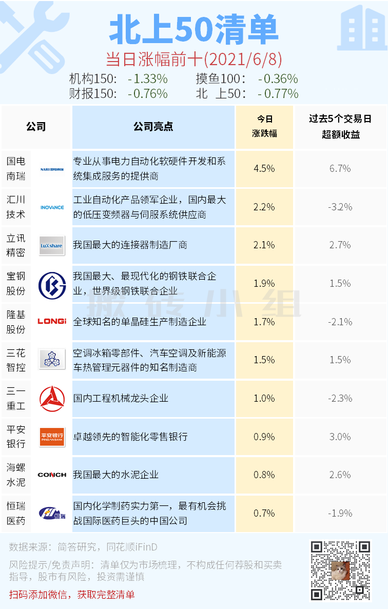 北上50榜单今天表现还是挺一般的,榜单里有很多白酒,今天跌幅都很大,这块上面聊过,就不多说了。