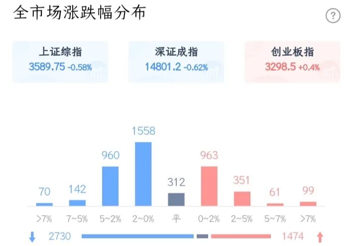 今天市场再次进入震荡,除了创业板以外,其他指数今天都收了根小阴线,下跌家数也达到了2700家,节前最后一天市场的风险偏好开始降低了。