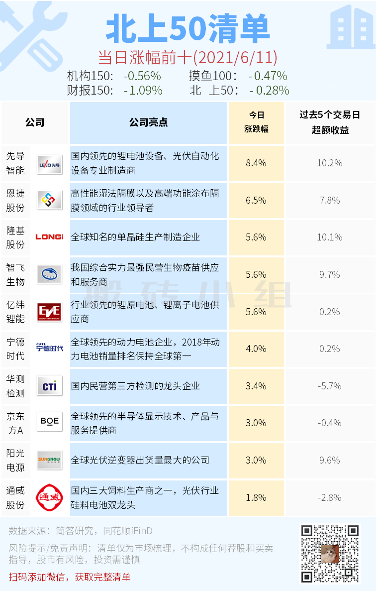 北上50榜单今天表现比较差,50只里只有15只是红盘的。上榜的个股基本集中在新能源方向,光伏的变化昨天复盘里聊过了,而新能源车这块渗透率摆在那,超高景气度是跑相对收益的机构必备的。