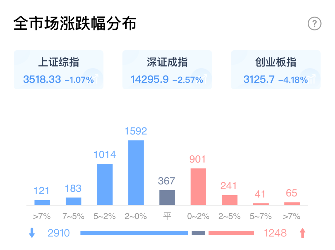 今天市场调整幅度比较大了,各大指数都收了根中阴线,创业板更是下跌超过4%,重锤之下估计大伙儿都在老实吃面。。