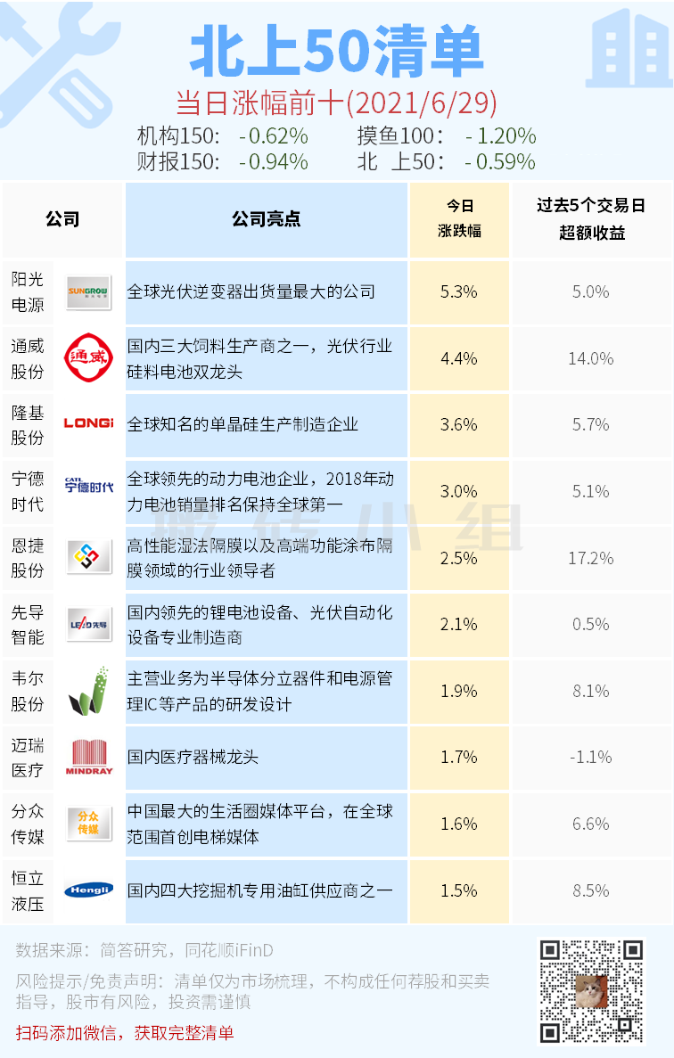 北上50榜单今天表现一般,上榜的集中在高景气的行业里,这块上面聊过了,市场当前的风格确实很极致。