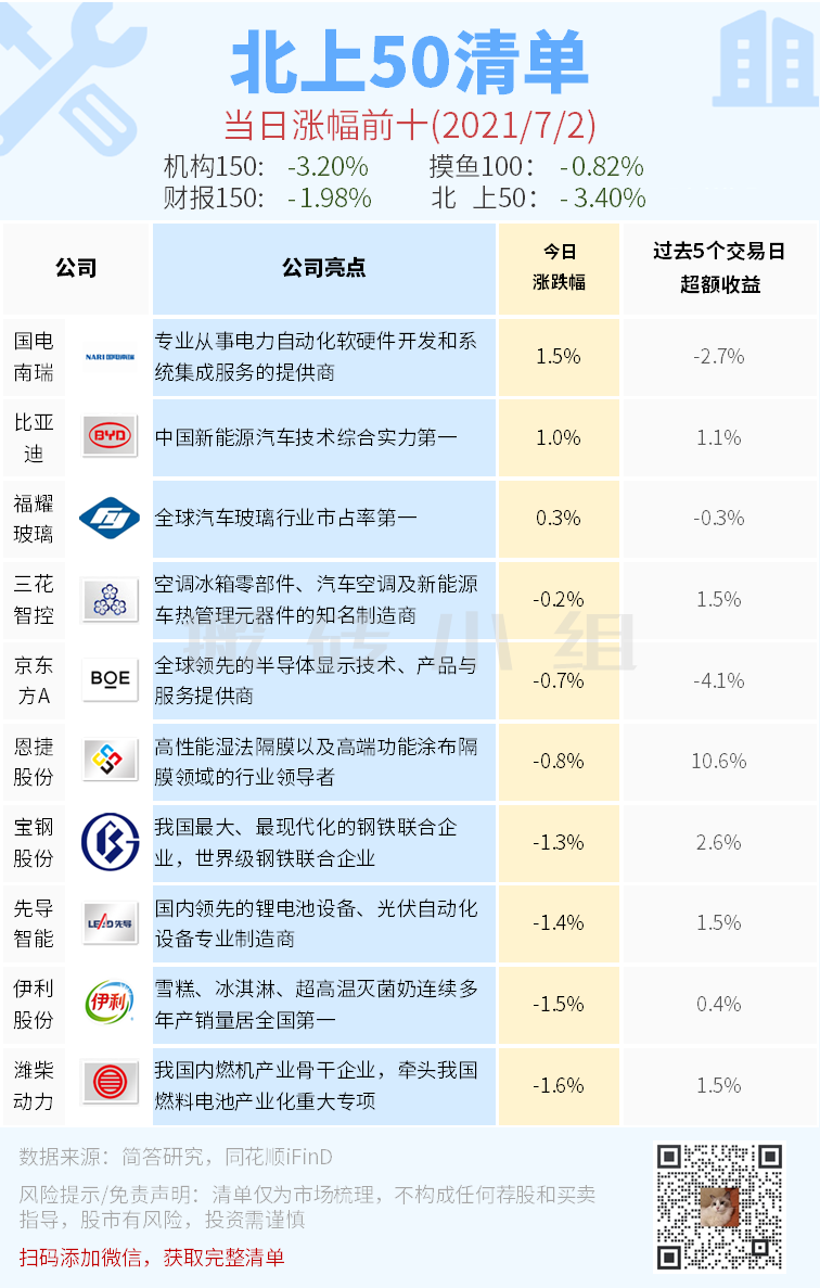 北上50榜单今天太惨了,只有3只票是上涨的,这碗面真的是太大了,好久没见过。
