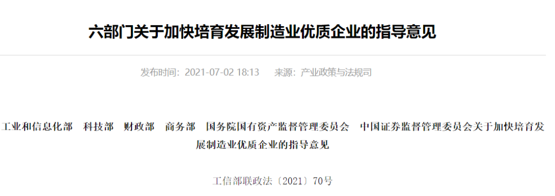 周末不少人都在讨论小巨人清单和单项冠军清单,因为有关部门周五发了一个《关于加快培育发展制造业优质企业的指导意见》,主要内容就是要加快培育发展以“小巨人”企业、单项冠军企业、领航企业为代表的优质企业。