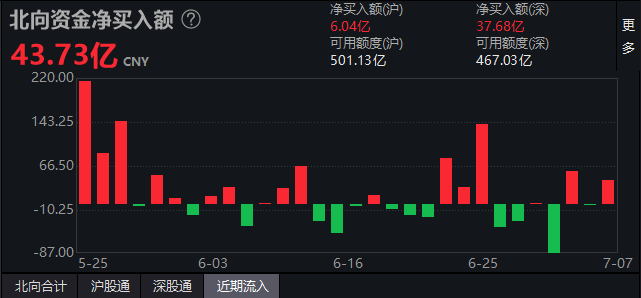 【北上资金观察】北向净流入43.72亿。