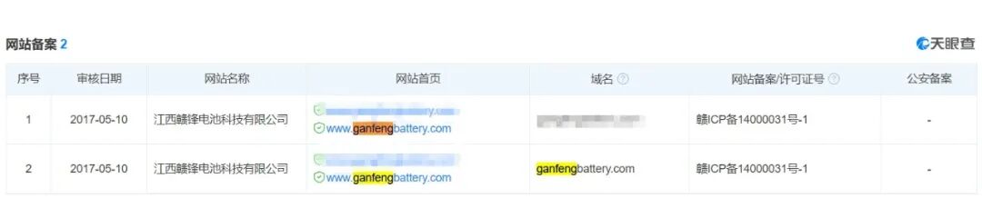 在研究赣锋的储能电池业务时,还有一个小插曲,天眼查显示,赣锋锂电有两个官网的网址: