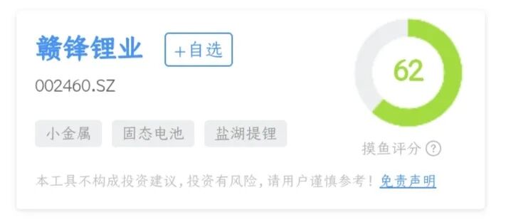 赣锋锂业的摸鱼财报助手打分是62分,财务标签和风险提示可以点击下图查看: