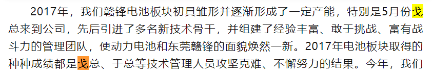 从这个简历就能看出来,戈在新能源电池行业从业20多年,一开始是干的技术,后来进入管理,是既懂技术又懂管理的人才。