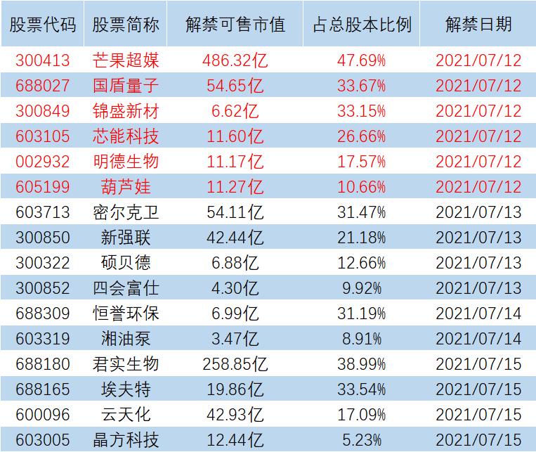 【限售解禁】