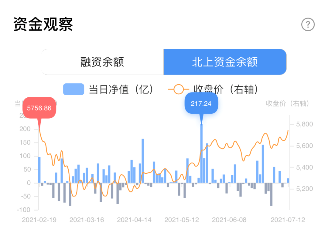 北上今天流入16亿,在市场放量大涨的情况下北上没有流入,说明北上对市场是没有总量方向的态度的,所以这块的观察继续保持中性。